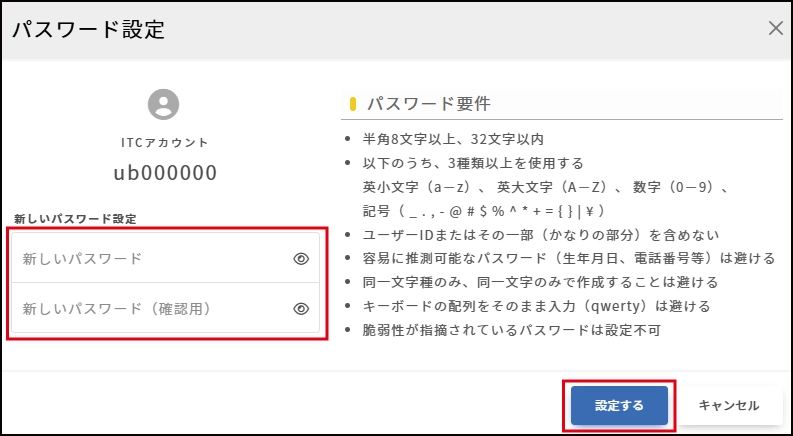 After entering your “New Password,” click [Set].