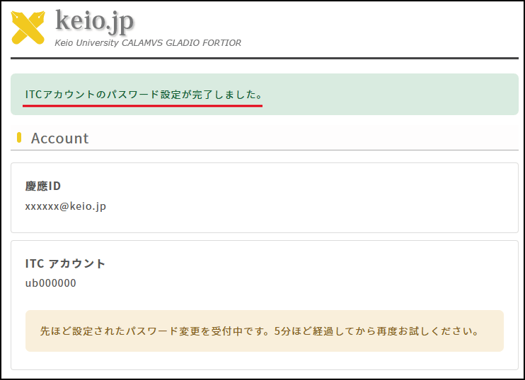 Once the setup is complete, the message “ITC account password setup is complete” will appear.