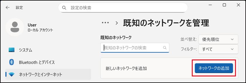 [ネットワークの追加] をクリックします。