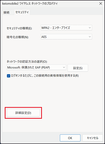 keiomobile2/eduroam へのパスワード接続