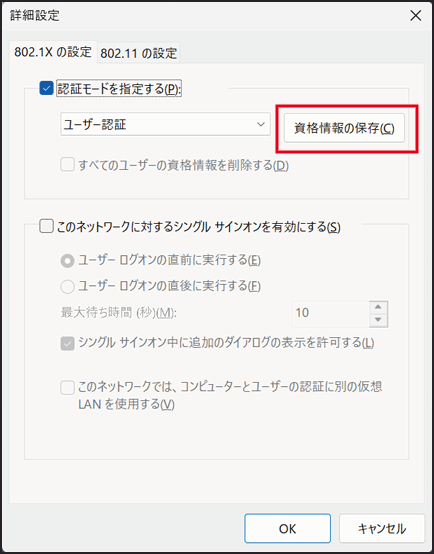 [資格情報の保存] をクリックします。