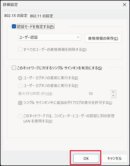 詳細設定 にて [OK] をクリックします。